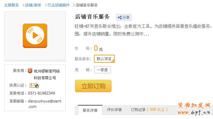 報名后,還需要在淘寶賣家服務里,搜索“店鋪音樂服務”服務進行免費訂購,如下圖所示。
