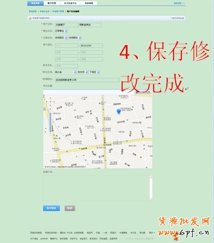 商戶編輯界面,可根據需要修改商戶信息,包括分類、電話、坐標等