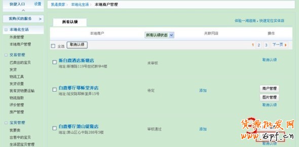 4、審核通過后,賣家中心左側欄中有“本地商戶管理”,進入后可以在此查看到已認領的商戶,并且也可以對已認領的商戶進行商戶內容和圖片的管理