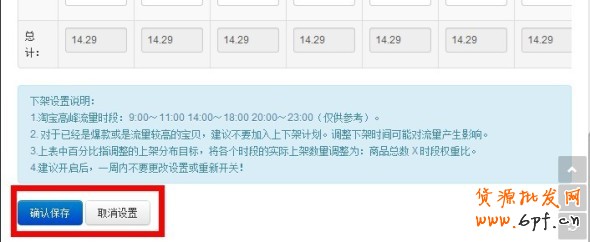 其它的時段也是這樣類推,想在哪個時段上架多少就設置多大比例。設置完了我們就要開始保存設置,如下圖: