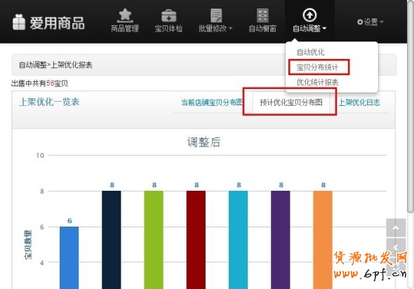 好了,設置好就點擊“保存設置”就算是自動調整好了全店的寶貝上架時間了,您可以通過【自動上架--優化統計報表】中查看一周每天上架的計劃及實時掌握上架動態,如下圖: