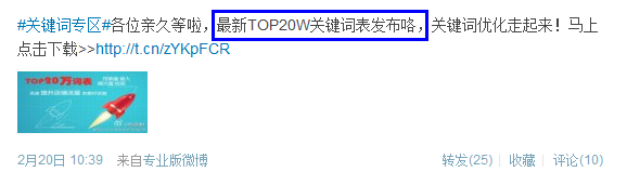 九.淘寶top20萬詞表  關注淘寶直通車官方微博