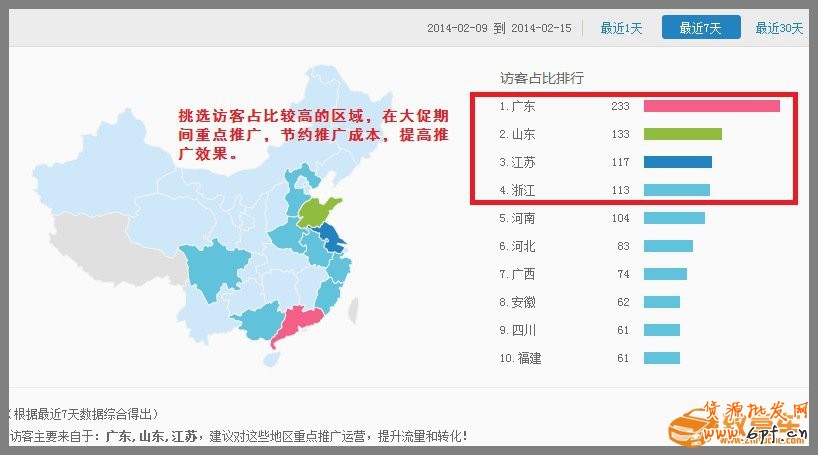 查看重點推廣區域:http://beta.sycm.1688.com/people/visitor_distribution.htm
