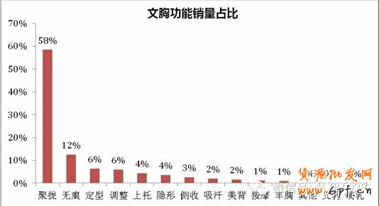 事業線擠擠總是有的,這句話一點也不假。在淘寶的298萬余件內衣共計294個款式中,58%的女性首選功能是聚攏,其次才是無痕和定型。在鋼圈的選擇上也能看出女性對胸部豐滿效果的追求,有鋼圈文胸的銷量占比達到75%,達到無鋼圈文胸的3倍。