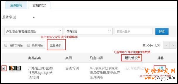注意: 使用交易約定退貨承諾服務的會員均應遵守《淘寶服務協議》和《淘寶規則》相