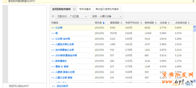 系統推薦關鍵詞,一次推薦200個,關鍵詞量相對比較大,但是相關和精準度一般類目詞和長尾詞居多。