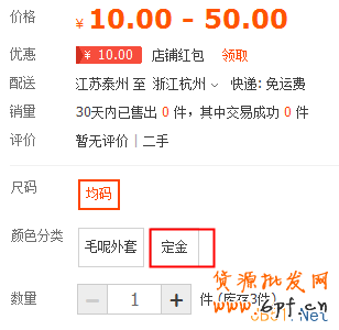 案例二:將常規商品和批發、缺貨、換購、贈品、定金、訂金等特殊商品放在一個寶貝里出售。例如: