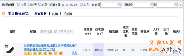 這是從生意經截取的寶貝7天數據,轉化率4.09%,跳失率64%。我各人認為這樣的產品,應該是淘客們比較喜歡推廣的產品了。