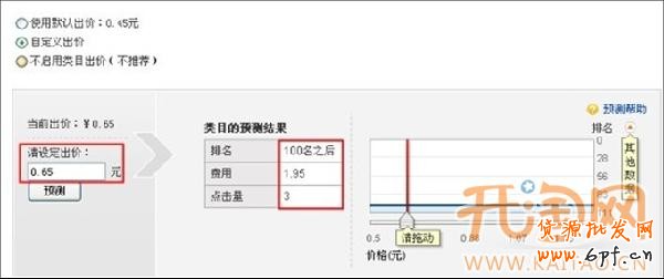 步驟二:點擊修改出價后就進入如下這個頁面,您可以根據自 身情況調整出價,您還可以根據類目預測估算改寶貝的類目出價。
