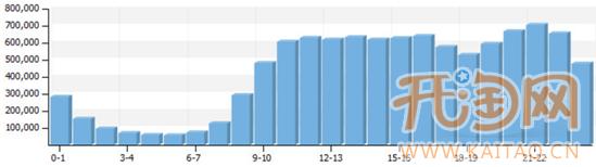 從交易數據曲線圖上,我們同樣可以看出,周末2天的流量與周一到周五的差距還是較大的。為了讓產品能夠盡量獲得較大的流量,所以開網店的小編建議主要集中在周一到周五,周六周日2天合并為一天對待。經過分析可以獲得了兩個數據指標:將一周按6天等分,1天內訪客較大的時間有9小時。