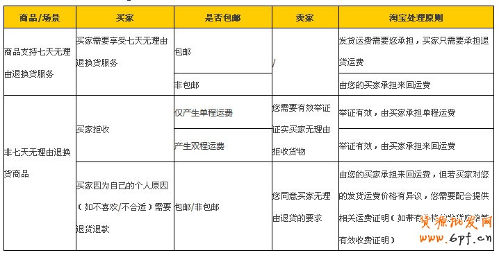 6、 淘寶處理爭議期間,您同意退貨或換貨,但就運費的承擔提出明確異議的,買家應當先行退貨,您簽收商品后,由淘寶根據本規范對運費承擔做出處理。
