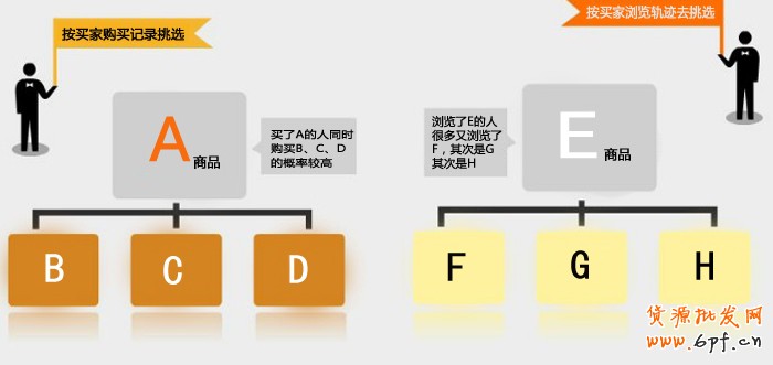 數據型關聯方法一:按買家鉤買記錄來挑選。導出寶貝銷售記錄,看購買了A商品的人同時購買了哪些商品。如果發現買了A的人同時購買B.C.D的概率較高,那么請把A商