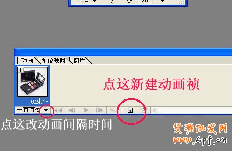 第六步開始做動畫:先改變動畫播放的時間,時間改為0.2秒,你自己定了。再新建動畫禎,點周圖中新建按鈕即可。如圖:
