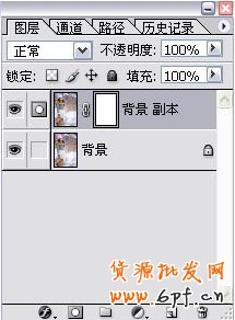 3、選中背景副本層上的蒙板,把選區部分填充黑色,如下圖: