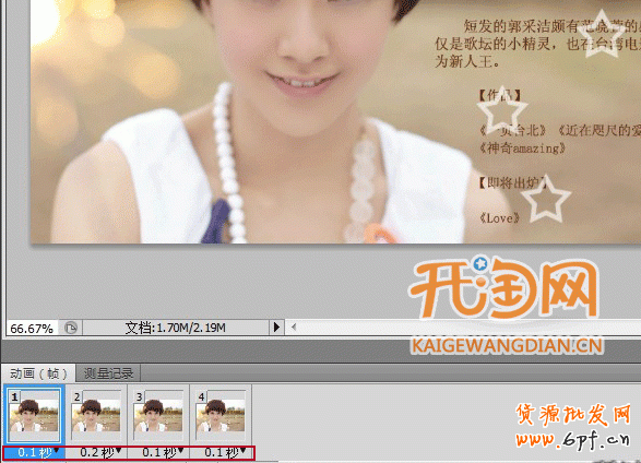 最后就是把時間定為0.2秒,點播放箭頭看看效果吧。