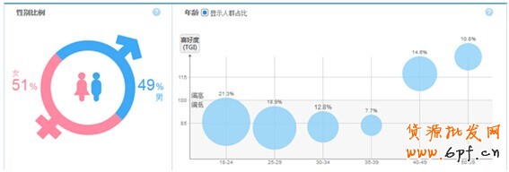 除了這個占比外,還有一個令人費解的,就是喜好度(TGI)。從這個圖我們可以看到40-49歲、50-59歲的人群喜好度高,這個是有原因的。由于40歲以上的人群不像年輕人喜歡逛,他們上淘寶的主要目的是為了購物,這是中老年人群的特征。