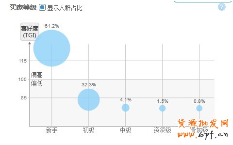 上圖充分暴露了老鳥的“逛”性。從喜好度(TGI)來看,新手(2心以下買家)的轉化率較高,越往高級別的買家轉化率就越低。新手上淘寶大多數以購物為目的的,由于他們對淘寶并不熟悉,所以他們也不會像高級買家那樣,貨比三家,因此,在詳情頁傳達性價比給這些買家就非常重要了。