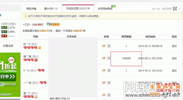 我先解答這個問題吧!這是一家天貓店,昨天剛上的活動,看銷量100000多筆,什么感覺?驚人的產品,是否有讓你感覺購買的欲望?是的,它的目的很簡單,就是為了在活動期間能走更多的量,走高轉化率而做的這筆銷量。聰明的朋友,一想也知道,100000wx29元=二百九十萬元,天貓傭金就要1.45w左右,怎么可能發貨?也發不起。即使惡意拍,自己店鋪肯定也沒上架那么多庫存貨。所以明顯一看就是自己拍下的。但是拍下后怎么辦?不發貨?接下去就是等待著申請退款了。時間差不多就退款了,,什么事情都沒有。就之多了一筆退款率,其他沒什么影響。所以朋友們知道怎么回事了吧?活動的時候用用這招蠻不錯的。