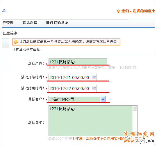 再次提示,一旦提交后,活動名稱與時間就不能修改了哦,如果真的填錯了,可以選擇重新創建一個活動,重新設置。