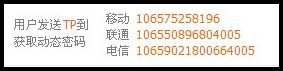 發送短信到指定代碼獲取動態密碼需要收費0.1元/條的通信費,詳情可咨詢您手機號碼的運營商。