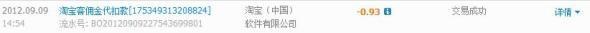 當您的寶貝被淘客們宣傳出去了,并且交易成功,您的支付寶賬單上會出現以下代扣款項,也就是付給淘客們的傭金: