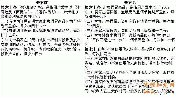 處罰力度加大:將原來的按次扣分變更為按件扣分,對那些出售多種假冒商品的人來說,面臨的處罰更大。