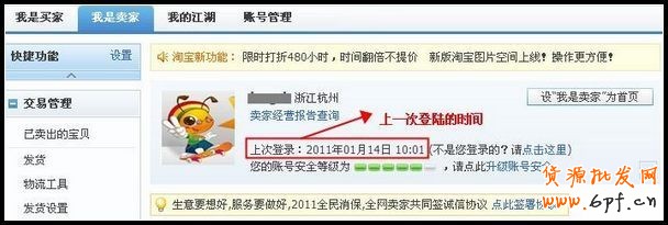 您可以進入“我的淘寶”-“我是賣家”中,,查看您上一次登陸的時間