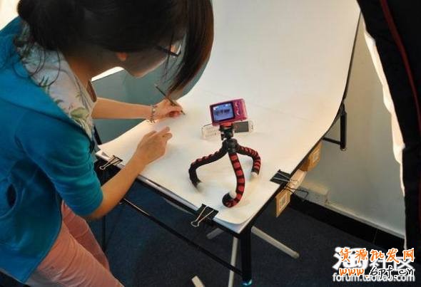 好了,對于一些體積不是那么細的物品,我們也就不要殺雞用牛刀了,來個八爪魚加個卡片機就搞定了,首先,先用鉛筆在紙上定下相機畫面你要的區域,這個隨我們定。