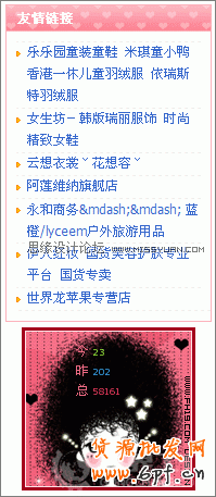 剛開店的朋友往往不是很重視友情鏈接,經常要么空著,要么就是亂七八糟的胡亂添加。我把友情鏈接歸納到店鋪裝修的環節,仍然是因這系列帖子的核心出發點,就是因為店鋪裝修是營銷的重要環節。所以可以想象友情鏈接自然很重要了。就像交朋友,相信假如比爾·蓋茨是你的朋友,哈哈,那你將被別人怎么看待呢?不說廢話了,只是希望大家在選擇友情鏈接時候要重視。