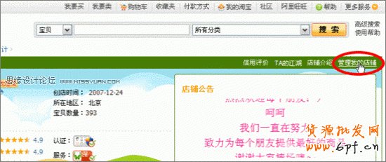 第一步:登錄“店鋪首頁”后,右上角點擊“管理我的店鋪”,如下圖: