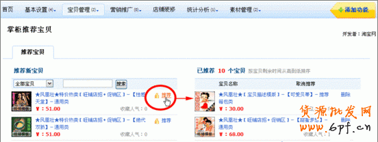 3、選擇你想推薦的產品,點擊推薦;當然也可以取消已經推薦的寶貝,點擊右側的“×”即可,非常簡單吧;