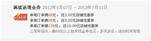 基于旺鋪,給賣家提供一個店鋪營銷平臺,通過這個營銷平臺可以給賣家更多的流量。讓賣家的店鋪促銷活動可以面向全網推廣,將便宜、優惠的店鋪促銷活動推廣到買家。滿就送包括滿就減,滿就送禮,滿就送積分,滿就免郵費等,如下滿就返現金券,也是比較實用的一款。