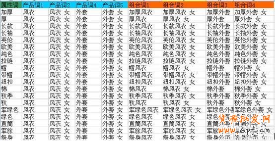這個表格整理了我們寶貝所包含的主要關鍵詞,公式:=A$2&" "&B$2,用這種發放的好處在于,都是和寶貝最相關的,質量得分相對來說都不會太低,屬性相關性不會拉動質量得分。這么多關鍵詞還可以細分組合,一百多個關鍵詞不成問題吧。