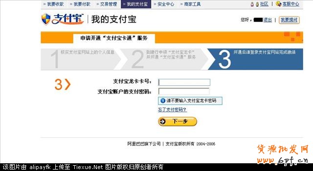 回到家中,登陸我的支付寶(www.alipay.com),激活支付寶龍卡和支付寶帳戶的綁定。