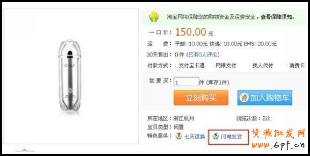 寶貝發布成功后就會在寶貝詳情頁上顯示閃電發貨 標志,也就代表著此商品打標成功;