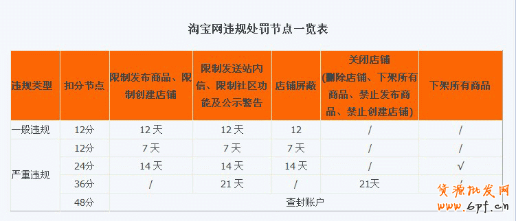 實物違禁信息按照嚴重程度區分為四級,每次違規對應分別扣分四十八分、十二分、六分及兩分。當賣家的一般違規行為扣分每到十二分將會受到店鋪屏蔽、限制發布商品及公示警告十二天的節點處罰,如果由于嚴重發布違規商品,我們將做店鋪48分的處罰。同時禁售類商品,淘寶將均支持退貨退款。
