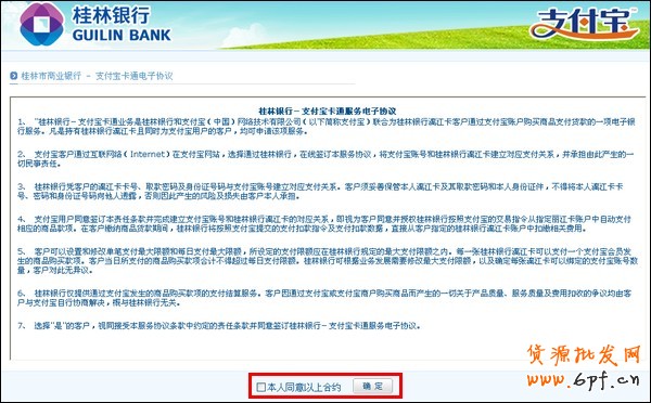 7、勾上“本人同意以上合約”,單擊“確定”