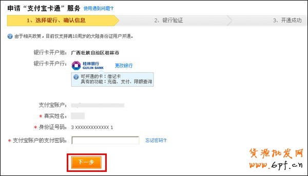 4、輸入支付寶賬戶的支付密碼等信息,點擊【下一步】;