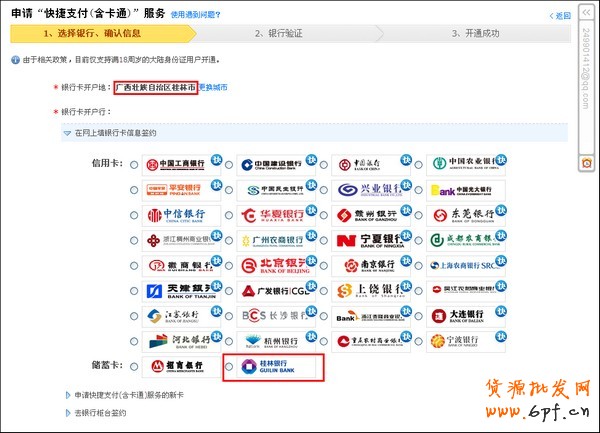 桂林銀行快捷支付(卡通)開通方式二:在支付寶端