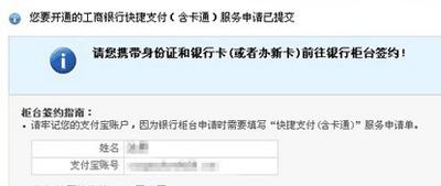 PS:去銀行簽約時,需要帶自己的身份證,還有支付寶賬號。
