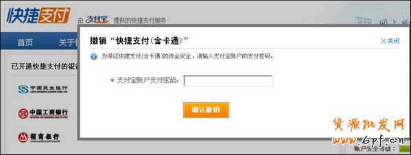 登錄支付寶賬戶——【我的支付寶】——【管理我的快捷】,找到對應的銀行,點擊【關閉】根據頁面的提示操作即可。
