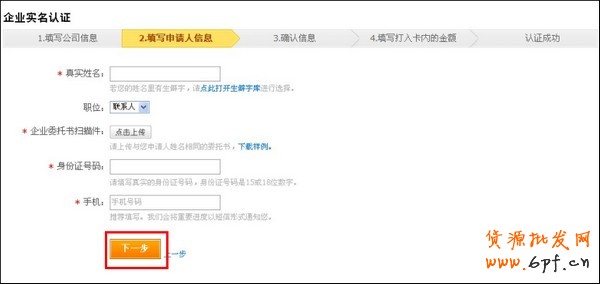 5、填寫申請人信息,(若申請人非法人,需要提供委托書),點擊【下一步】;