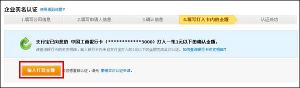 8、營業執照審核通過,需要在3個工作日等待打款,打款成功之后,登錄到支付寶賬戶,點擊【申請認證】——點擊【輸入打款金額】;