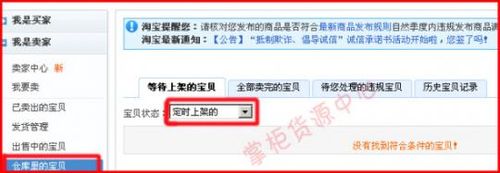 寶貝設置好后,在倉庫里——所有等待上架的寶貝里找不到寶貝的,這時寶貝是沒有在倉庫的,在定時上架里寶貝狀態:選擇定時上架。