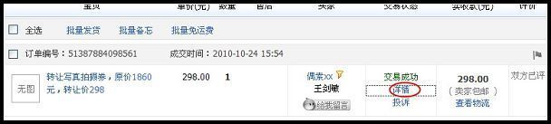 賣家在已賣出的寶貝中,通過點擊“詳情”進入訂單信息頁面,