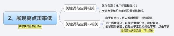 (另外,關注質量得分,可能質量得分低,出價較高,能夠獲得展現,但是由于寶貝相關性不高,導致點擊不多,這種情況建議更換詞或降低出價)