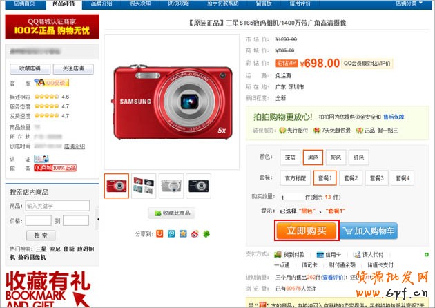 第二步:若想購買此商品,點擊“立即購買”(如下圖所示)或加入購物車待商品選擇完畢后一起購買;