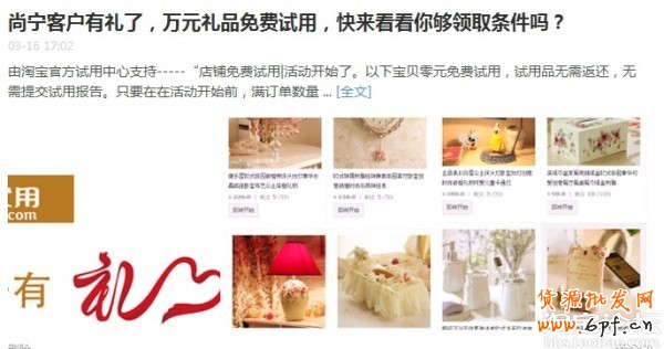 6、官方推廣渠道:店鋪免費試用官方頁面:http://www.taobao.com/market/try/wangpu.php,店鋪活動頁:http://www.taobao.com/go/act/315/yxzx.php,更多官方推廣渠道即將上線,給予官方流量資源的支持;