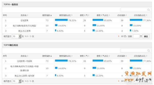 我們可以看到,在淘寶搜索欄,排在第一的類目是細分類目“報刊架”,而且,下面搜索出來的產品,基本上都是在“報刊架”這個細分類目里面的。