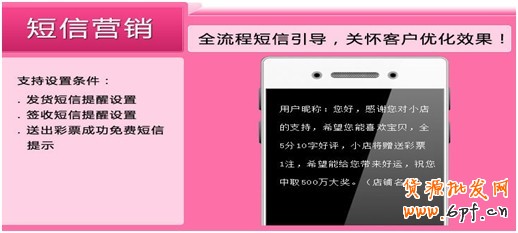 3、短信引導,設置發貨,或確認收貨或簽到后。給買家自動發送短信提示,讓買家在收到貨后,可以第一時間就了解到活動,并積極參與進來。
